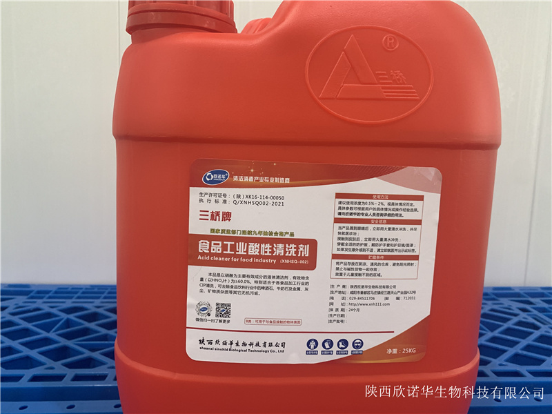 2.三桥牌食品工业酸性清洗剂(XNHSQ-2型)从原材料到包装及整个生产过程均采用食品级标准生产,安全无毒性,对塑料、不锈钢无腐蚀,对橡胶密封件相对温和。