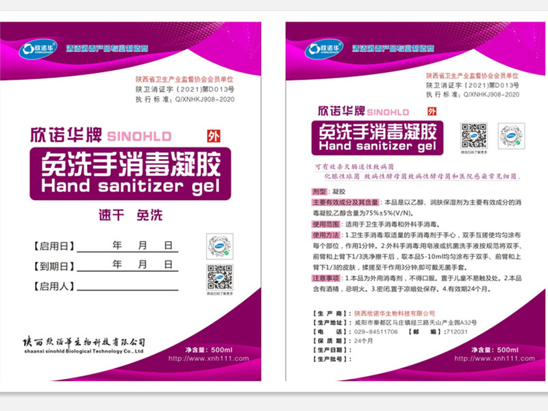 欣诺华牌免洗手消毒凝胶使用说明书