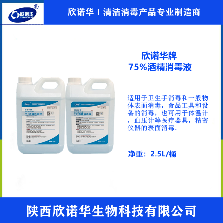产品简介: 欣诺华牌医用75%酒精消毒液对呼吸道和皮肤刺激性小,清洁消毒同时完成,保质期长达24个月,使用方便的特点,本品为中效消毒剂,允许应用于食品,医疗,家庭等行业的消毒。