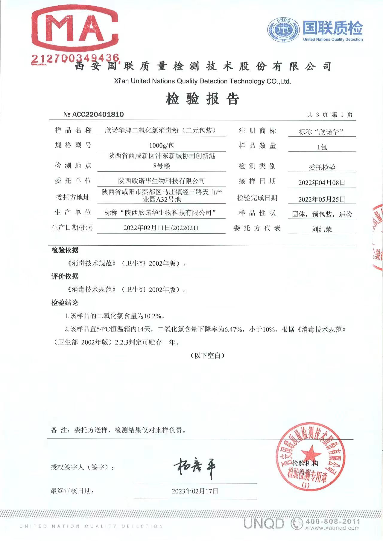 涉水级二氧化氯消毒剂(商品名称:欣诺华牌二氧化氯消毒粉XNH-0120型)是获得涉水批件产品,专业用于生活饮用水消毒,二次供水消毒的涉水级消毒剂,生产商:陕西欣诺华生物科技有限公司,服务热线:13991111706(微信同号)